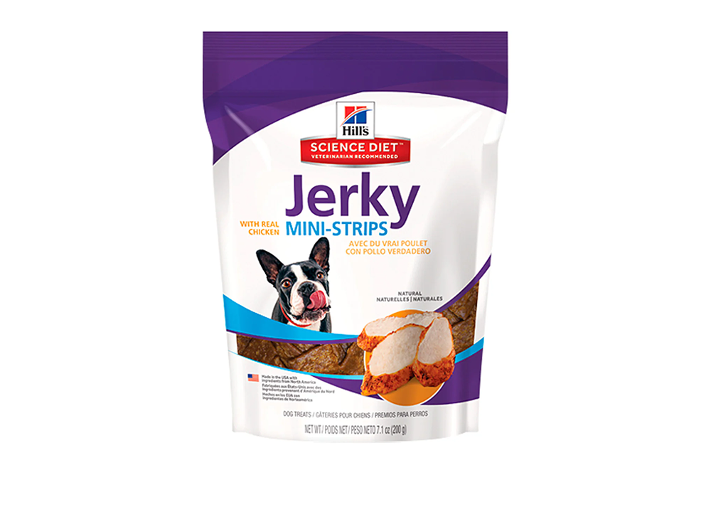 Los premios para perros Hill’s Science Diet Jerky Mini-Strips con pollo verdadero son premios naturales hechos con solamente los mejores ingredientes, incluyendo pollo verdadero para un sabor que les hace agitar la cola. Estos premios naturales para perros de carne seca están hechos en los EUA con ingredientes de Norteamérica y no contienen colores o sabores artificiales. Los premios para perros Science Diet son un complemento balanceado para la rutina de alimentación sana de su perro. *Hill’s 100% Satisfacción garantizada: Estamos seguros de que su mascota disfrutará los alimentos Hill’s Science Diet . Estamos tan seguros que ofrecemos una garantía del 100% o le devolvemos su dinero.