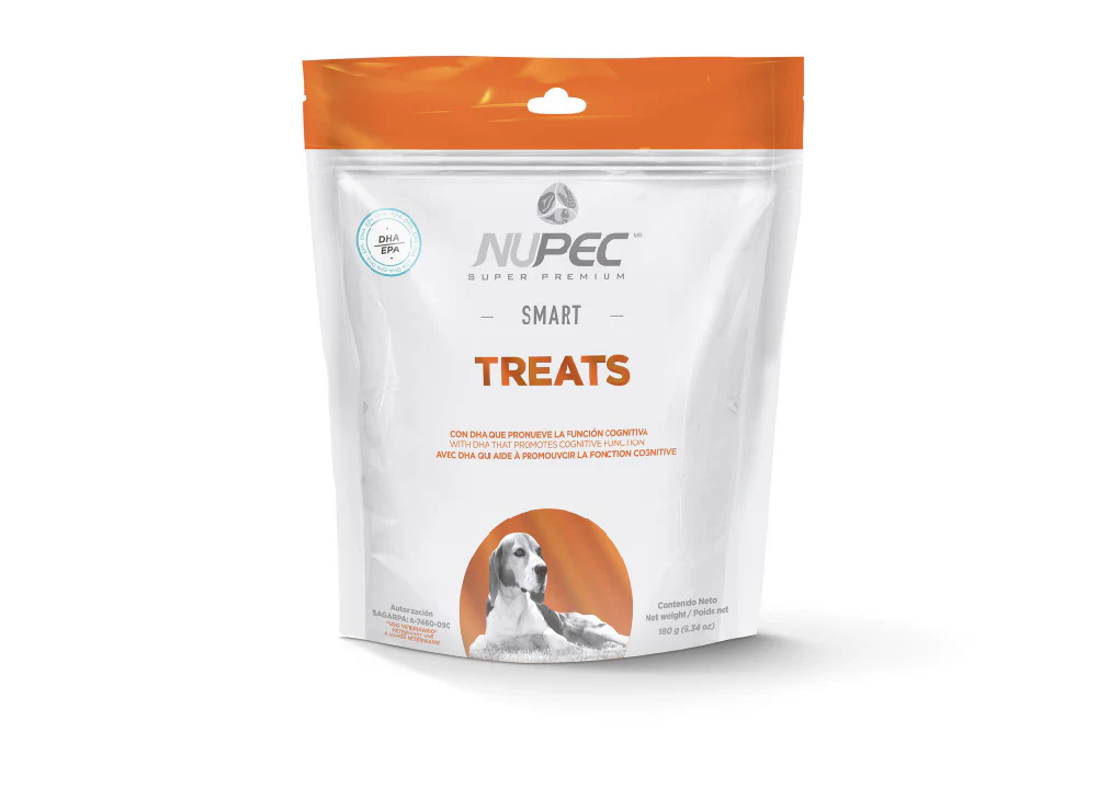 Con EPA/DHA, que estimula la inteligencia en la mascota.